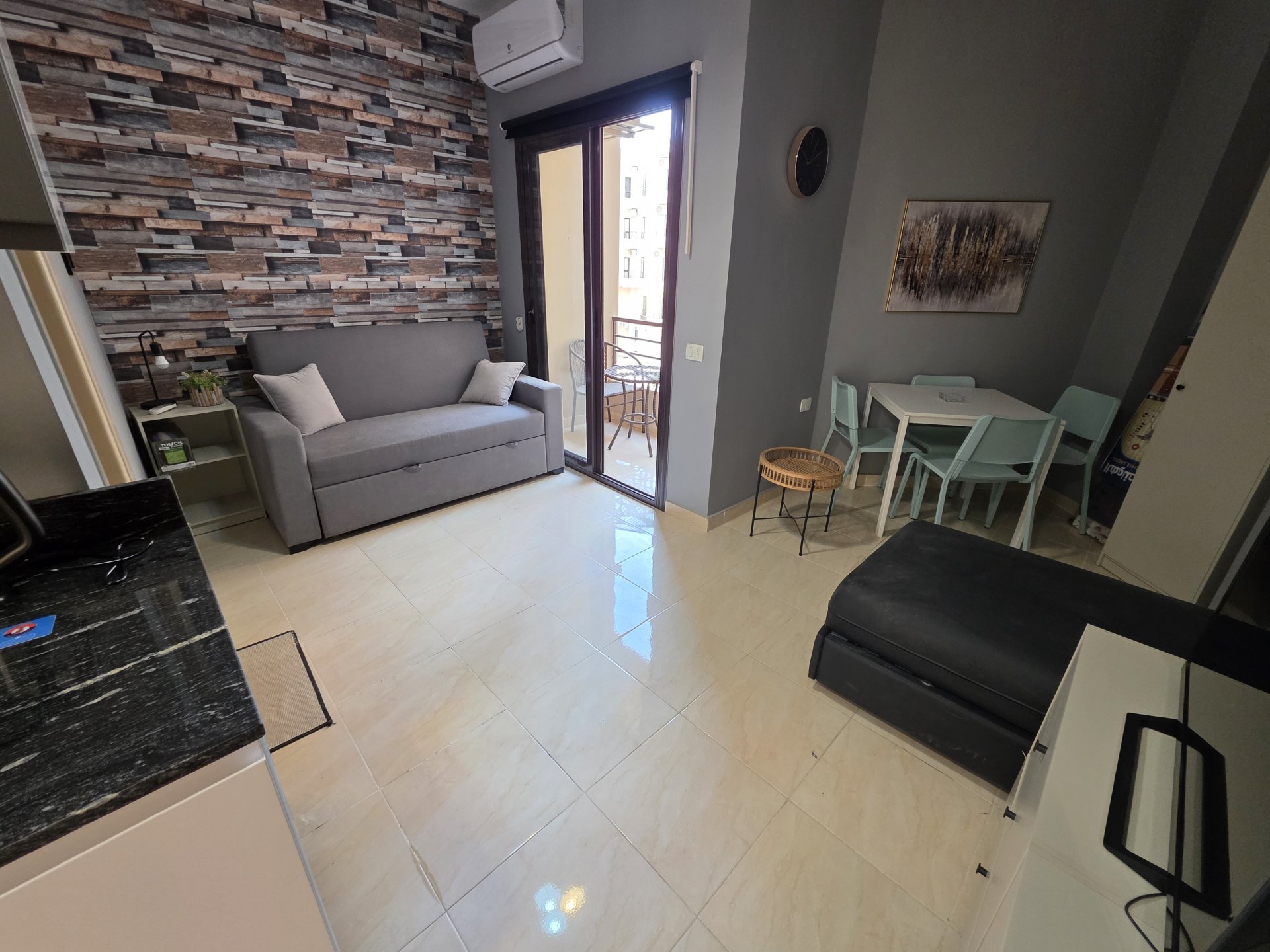 Apartament typu studio 30m, kompletnie wyposażony. Posiada balkon z widokiem na basen.