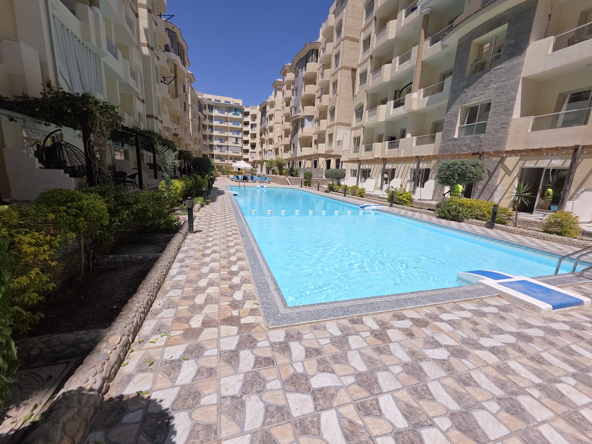 Apartament znajduje się w centrum Hurghady około 1400m od Mariny. W okolicy znajduje się wiele sklepów , restauracji oraz innych atrakcji. Do plaży jest około 150m. W obiekcie znajduję się 3 baseny.